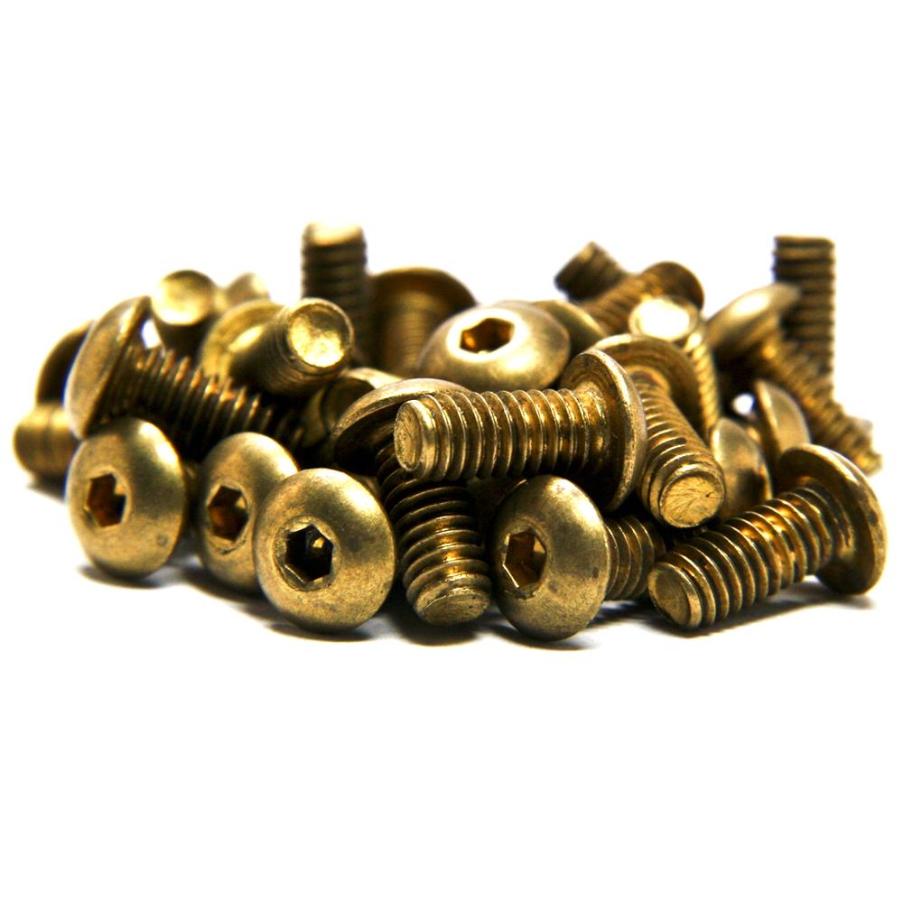 Brass button head screw. 8-32 thread Available styles include Button Head and Flat head Available in 1/4" 3/8" 1/2" and 1" long Pack of 25