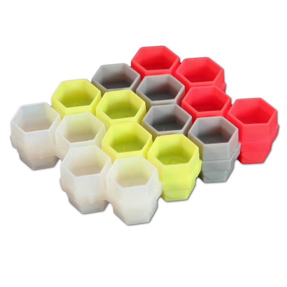 The hands down greatest ink cap for tattooing. The hive cap featured easy setup, just snap together and get to work and are.more Stable than standard caps. Each hive cap contains 4 usable cells in a "small #9" side and "large #16" side. Each Bag contains 50 Hive cap sets totaling 200 usable ink cells.