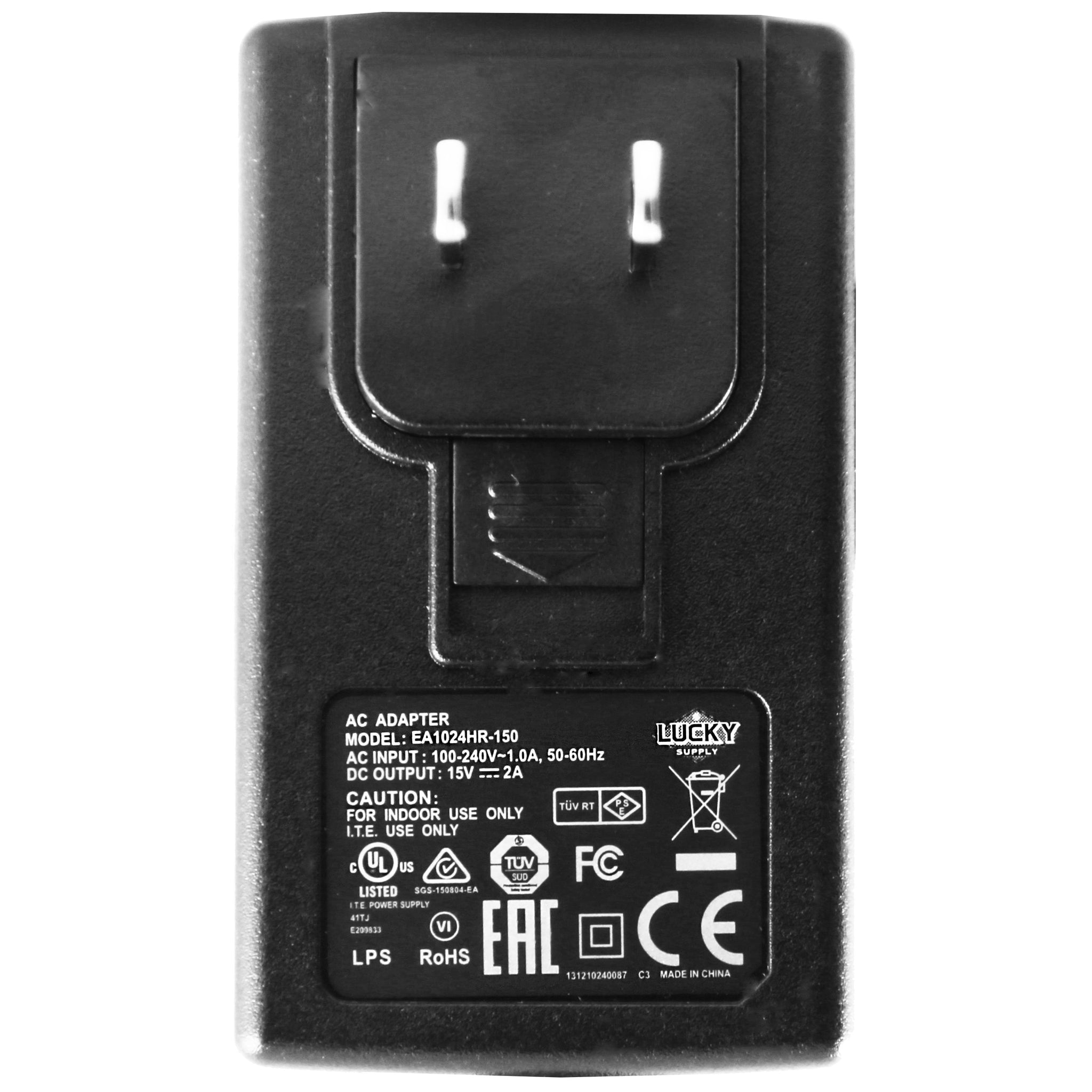 AC/DC Transformer Input- 110-240V AC ~50-60Hz .8A and Output- 15V DC 2A 30W Max with universal plugs.