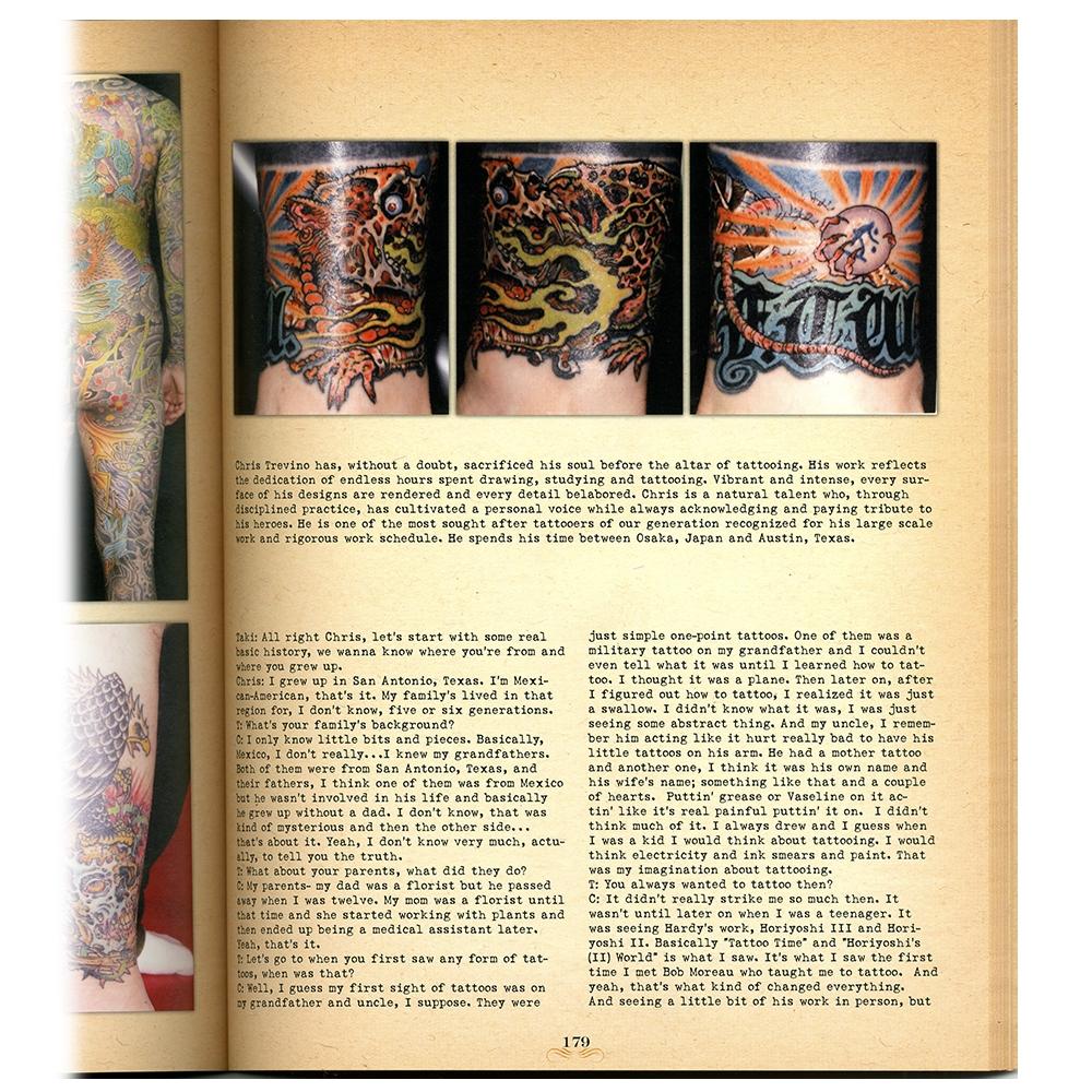 Tattoo Artist is a 243 page extensively illustrated book of interviews, art and candid photos with tattoo artists by Jill "Horiyuki" Mandelbaum. Featuring Adam Barton, Grez, Eric Jones, Henning Jorgensen, Gary Kosmala, Oliver Peck, Heath Preheim, Javi Rodriguez, Robert Ryan, Richard Stell, Chris Trevino, Jef Whitehead and Pinky Yun.This excellently put together book really gives you a feeling of personally knowing the artists included.