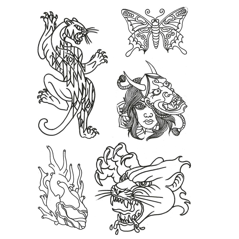 This unique spiral bound book is loaded with 54 pages of classic tattoo-flash inspired line drawings coupled with original and contemporary works.