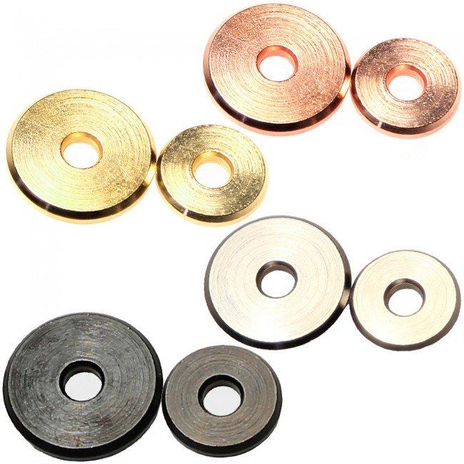 Round Spring Shelf Washers. Available in brass, nickel plated, blackened, and copper plated finishes.